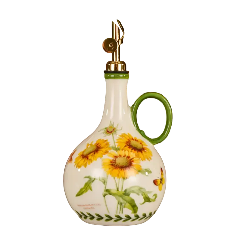 Ceramiczny dozownik do oleju z motywem słonecznika