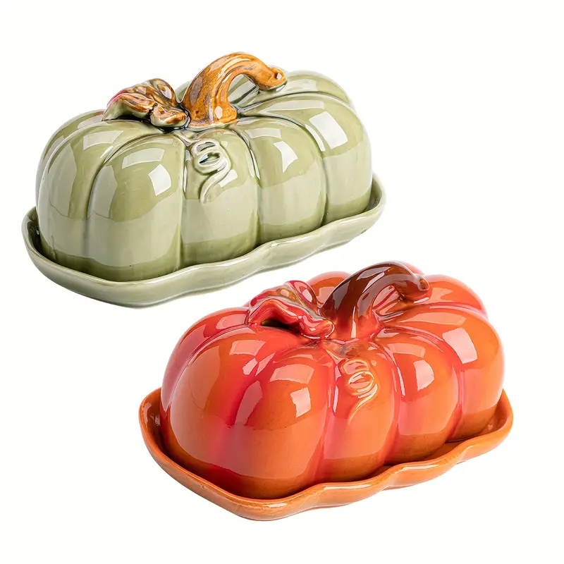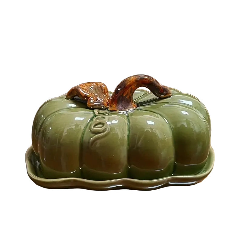 - Ogólna forma: Półmisek, pokrywka i taca razem tworzą styl inspirowany kształtem dyni.